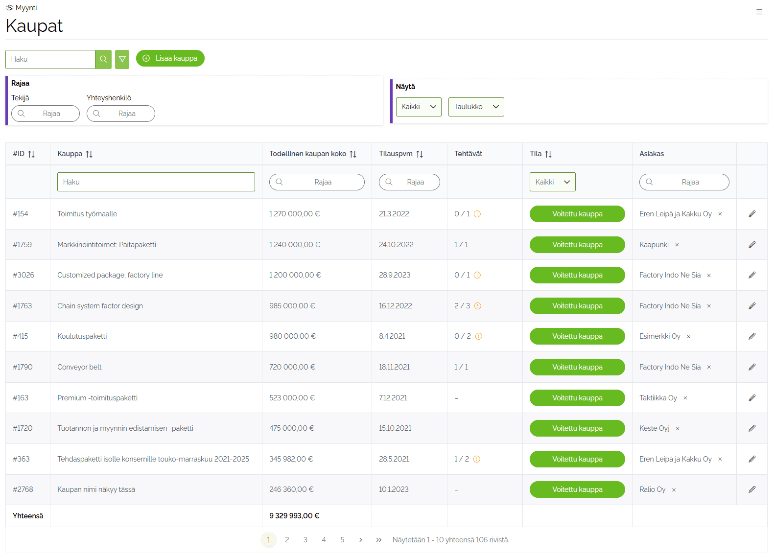 Projektien johtaminen ja myynti samassa järjestelmässä