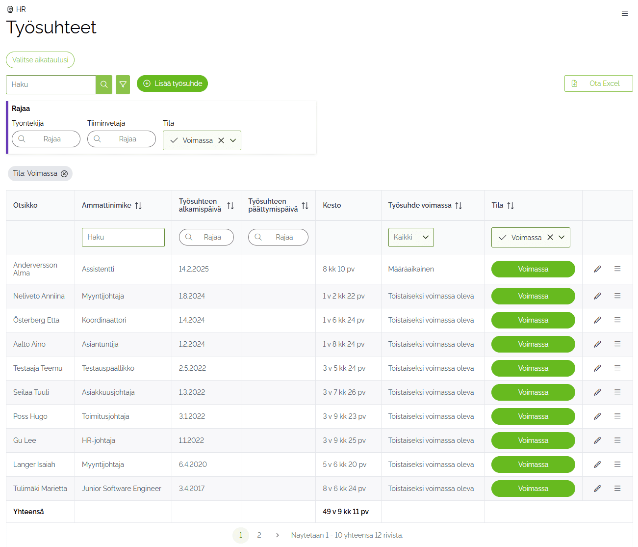 Työsuhteiden elinkaari, yhteydenpito & dokumentit liitteineen
