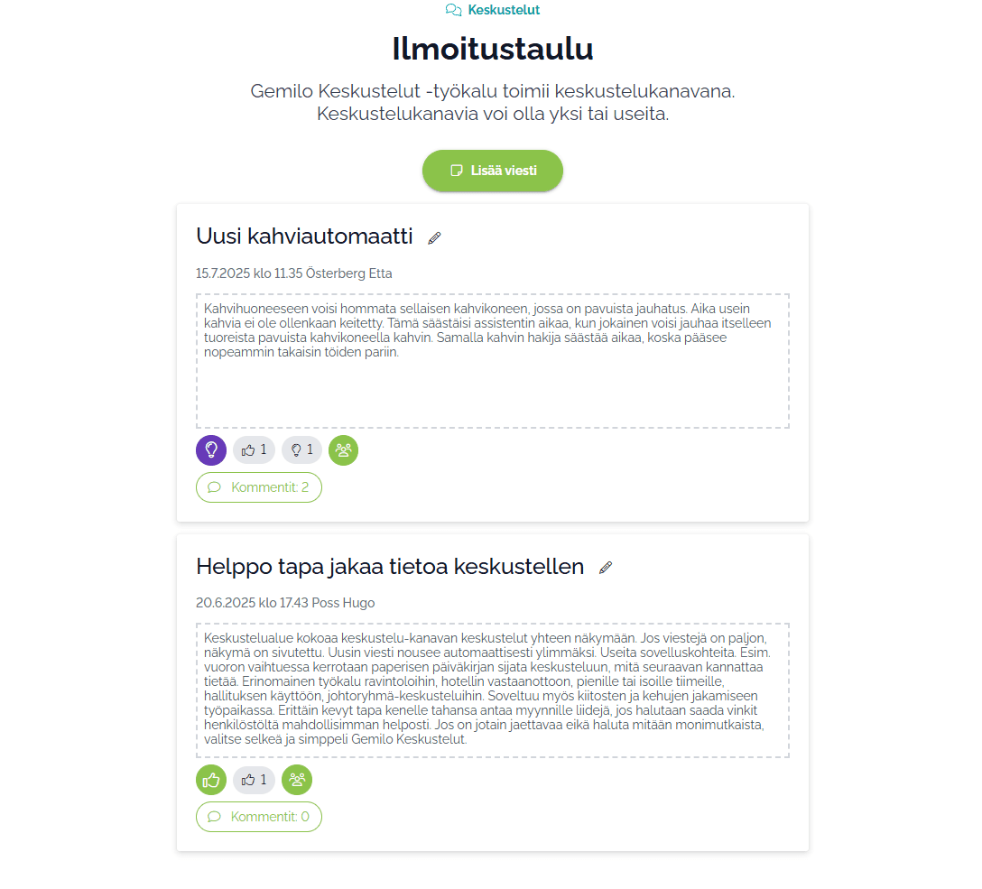 Moderni, muokattava ja visuaalinen työkalu sisäiseen viestintään